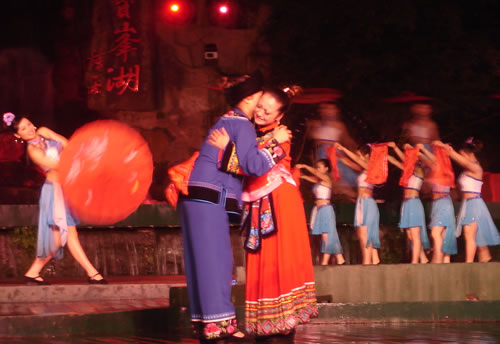 姑娘出嫁,為女人一生中最大的喜事,本應充滿幸福、歡樂的氣氛。然而,舊時湘西、湘南、鄂西、川西(成都等地)、黔東(銅仁、凱里一帶)諸地,卻流行著一種與之完全相反情調的古老婚俗——“哭嫁”。也就是在姑娘“出閣”之前,不但新娘本人哭得很傷心,像淚人一般;而且,新娘的母親、姐妹以及姑媽、姨媽、舅媽及其他交往較多的女友,都要陪著新娘哭。湘西土家族哭嫁的風俗尤為普遍、濃厚,不但哭嫁的時間較長(少則十來天,多達個把月),而且哭嫁歌也保存得古樸、完整。 姑娘出嫁為什么要哭?哪有那么多的東西可哭?這是一種蘊含甚為豐厚的人生禮俗,也是一種饒有興趣的婚俗事象。 俗話悅:“人不傷心不落淚。”姑娘出嫁之所以要哭,是因為在舊式婚姻制度下,女孩(尤其是勞苦大眾家庭的女孩)總是作為犧牲品“拋”(賣)給夫家的,她們的身心受到極大傷害。因此,湘西等地的女孩在出嫁之前要哭泣,要呼號,哭嫁歌就是感情發(fā)泄的最好表現(xiàn)方式。 哭嫁的源起 哭嫁的風俗,不知道起源于什么時候。戰(zhàn)國時期,趙國的公主嫁到燕國去作王后,她的母親趙太后在臨別時"持其踵,為之泣,祝曰,必勿使返。"大約就是后來長盛不衰的哭嫁風俗的濫觴了。 這種風俗,直至清末還盛行于四川農(nóng)村中,隨地區(qū)變化而大同小異。解放前,聽老人們說,早些時候,沒有嫁而不哭的人家。如果出現(xiàn)嫁而不哭的姑娘,也會被鄰里看作沒有教養(yǎng)的人,傳為笑柄;相傳有出嫁姑娘不哭而遭母親責打的事,這位母親當然算得上是入流導演了。 舊時宣講故事中,有花轎臨門,父親強令哭《迎風罵媒歌》的情節(jié),可知哭嫁是有歌詞的,帶有表演性質,原是用來渲染氣氛,以悲襯喜;不過,因為婚姻是包辦的,真哭真罵的也不會少。 抗日戰(zhàn)爭后期,風氣較開,哭嫁之風已不盛行,而老人們卻還在津津樂道,哭的方式是,從婚期前一個月的首日起,入黃昏,姑娘訴哭約一個小時,其聲嗚嗚。十天以后,她的母親加入"陪哭";又十天以后,她的祖母加入陪哭。這家沒有諸姑姊妹,人們說,如果有的話,也應當加入陪哭行列的。 哭嫁在川西叫"坐堂"。清代吉道人《味蔗軒隨筆·坐堂詞》云:"婚姻之禮,各省風俗不同。然酌禮準情,各省亦大同小異。凡男家娶婦先賦之詩,謂之'催妝';女家親串頌女之詞,謂之'坐堂'。坐堂者,女當喜期將近之先數(shù)夕,其諸姑伯姊,置酒為女祖餞,各述吉祥之詞,以為頌美,女則申己之意以答。女左右更有少女,則隨而嫻習者也。其詞要多鄙俚,然有音韻凄清,風格遒勁,如古歌古謠者。羅江明府蔡,微服巡查鄉(xiāng)里,一日行至某處,值有女子歸,諸娣姒咸以諛詞頌女,女申意以答。忽風吹句入耳,詞曰:'鳳凰落在桌子上,哪個女兒肯離娘'。一字一轉,音韻凄其,誰謂天籟之鳴,不在愚夫愚婦耶!"云云。吉道人姓周名際唐,成都人。吉道人記得明明白白,可惜他只記了一句哭嫁詞,難窺全貌。好在舊時坊間叢刻中有《訓女哭嫁》一種,可見一斑。這本小書的目錄有《閨聲哭》、《娘訓女》、《嫂哭妹》、《哭爹媽》、《哭哥嫂》、《花轎到屋哭》、《哭叔爺》、《哭兄弟》、《哭外公外婆》、《哭舅爺》、《拜香火哭》等等,編次有點凌亂,似乎隨手所記,未經(jīng)文人之手。遙想《詩》十五國風未刪之時,大約也不過如此吧! 閨聲哭 娘聽后園鳥雀驚,要聽房中女兒聲。 我娘當門苦葛藤,手攀苦葛訴苦情。 我娘苦情苦過了,女兒苦情才起根。 ............ 桔子開花葉子青,陽雀開聲我開聲。 新打銅盆才裝水,新打剪刀兩面青。 娘不開口我開口,娘不開聲我開聲。 當門一根木蓮樹,目連樹上掛卷經(jīng)。 一本經(jīng)書背完了,未見我娘來開聲。 虧了我娘睡得穩(wěn),爹媽眼淚貴如金。 哭爹媽 月亮彎彎照華堂,女兒開言叫爹娘。 父母養(yǎng)兒空指望,如似南柯夢一場。 一尺五寸把兒養(yǎng),移干就濕苦非常。 ............ 勞心費力成虛恍,枉自爹娘苦一場。 哭兄弟 黑漆茶盤烏木頭,姐姐離娘弟不留。 留到姐姐吃你飯,留到姐姐穿你衣。 兄弟當家掙家忙,嫁了姐姐買地方。 上頭買齊潼川府,下頭買齊遂寧鄉(xiāng)。 ............ 這個本子所記是川北的歌詞,以前所見的是川南,吉道人所記的是川西,川東,大約也不會大異的。遺憾的是,該書所記哭嫁詞雖有"只怨媒人莫良心"等語,卻沒有列出"罵媒專目,大約是怕媒人太難堪了吧! 其實,罵媒是哭嫁中必不可少的節(jié)目,也是最具反抗色彩的哭嫁歌詞。舊社會,婦女無婚姻自由可言,由于"三從四德"的束縛,平時對于自己的終身大事幾乎不能置一詞,全由媒人和父母擺布;因此,這登花轎之前的"罵媒",便是難得的發(fā)泄機會。這早已反映在戲曲和民間說唱等藝術之中。 以前,川劇《柳蔭記》有《英臺罵媒》一折,英臺罵媒人,言詞激烈,聲色俱厲,充分表現(xiàn)了祝英臺剛烈的性格和反封建精神。她罵道:"提媒婆,更恨她,胡言亂語嘴喳喳......唯愿你,房屋遭火化,田園水推沙。"但這場戲現(xiàn)在卻被刪掉了,五六十年代還有的,全國第一屆戲曲會演的川劇《柳蔭記》也有這一折,是陳書舫演的祝英臺,得了一等獎。現(xiàn)在城里人大約以為媒婆不必罵了,但偏遠地區(qū),媒婆似乎還在肆虐。不過,據(jù)說,媒人從來不怕你罵,反倒怕你不罵;你不罵,他的"霉(媒)氣"反而脫不了。這也是風俗民情中的一種幽默吧! 在三峽民間,特別是在巴人(土家族)的生活