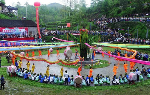 鮮麗奪目的苗族服飾,情調(diào)別致的攔門酒,風(fēng)格獨(dú)特的卡鼓、攔路歌、邊邊場,會(huì)使你耳目一新,如癡如醉;還有傳統(tǒng)節(jié)日"四月八"的跳月跳花,"六月六"的山歌對唱,又會(huì)使您心動(dòng)神搖,嘆為觀止。