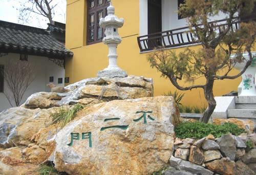 不二門 清嘉慶年間辟有洗心池!安欢T”如斧斫神劈,為石林天成,石林壁上鐫滿歷代文人的詩詠。這里古柏參天,藤蘿倒掛,環(huán)境幽美。有壁石如書的萬卷書者,有嵐霧束腰的七級青石培英塔。凝神盤坐的南海觀音是一塊天然造型的巨石,惟妙惟肖。觀音巖周圍,環(huán)繞著具有明清風格的地藏庵、嵩山堂、水府閣等建筑物,布局靈巧緊湊,主題鮮明,因勢造景。景點間曲徑迂回,迷趣深奧,稱八陣圖。景區(qū)內(nèi)的河灘上有兩處溫泉,氤氳縈繞,水溫適宜(41℃),水質(zhì)良好,能治療多種疾病?h城人民經(jīng)“不二門”前往溫泉就浴者絡(luò)繹不絕,現(xiàn)又增建了石牌坊和民俗博物館。