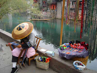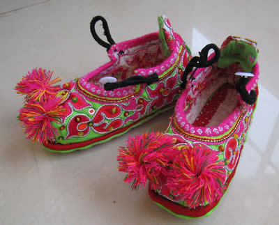 刺繡 刺繡。是土家姑娘在直紋平布上,按照布紋的經(jīng)緯和預先繪畫的花樣與底色不同的絲線繡成圖案。舊時姑娘們穿的繡花衣服,繡有服飾花邊、胸花、帽花,此外繡花枕頭、繡花荷包等也是精巧的手工工藝品。土家刺繡在配色上有自己的講究與習慣,一般選用青、藍、大紅等深色布料作底布,用淺色繡線制作圖案,或者相反,兩種用法的結(jié)果使繡品顯得質(zhì)樸逼真,色澤鮮艷,對比強烈。傳統(tǒng)圖案有“花開富貴”、“龍鳳呈祥”、“鴛鴦戲水”、“喜鵲鬧梅”、“松鶴同壽”等,分室內(nèi)、衣著、工具、行李裝飾等多種種類。在景區(qū),土家婦女邊繡邊賣的精美鞋墊,深受海內(nèi)外游客喜愛。