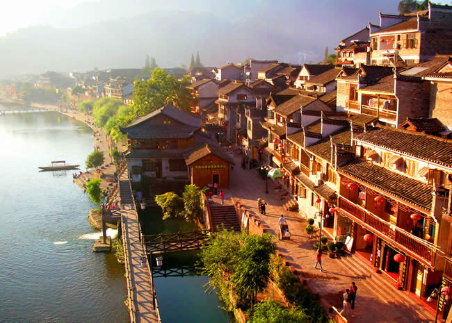 下 午:游覽千年古鎮(zhèn)--【芙蓉鎮(zhèn)】(門票100元/人自行購買):參觀古鎮(zhèn)石板街,貞節(jié)牌坊、王村瀑布,品嘗劉曉慶米豆腐)。赴鳳凰古城(車程約2小時),抵達古城后安排入住酒店休息,之后可自由活動,欣賞鳳凰夜景!
