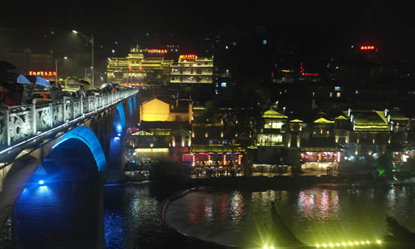 鳳凰古城是國家歷史文化名城,曾被新西蘭著名作家路易艾黎稱贊為中國最美麗的小城。這里與吉首的德夯苗寨,永順的猛洞河,貴州的梵凈山相毗鄰,是懷化、吉首、貴州銅仁三地之間的必經(jīng)之路。作為一座國家歷史文化名城,鳳凰的風(fēng)景將自然的、人文的特質(zhì)有機融合到一處,透視后的沉重感也許正是其吸引八方游人的魅力之精髓。這座曾被新西蘭作家路易艾黎稱作中國最美麗的小城之一的“鳳凰古城”建于清康熙時,這顆“湘西明珠”是名副其實的“小”,小到城內(nèi)僅有一條像樣的東西大街,可它卻是一條綠色長廊。
